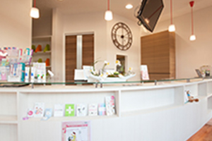 こちらにて受付を行います。お会計や次回のご予約なども承ります。